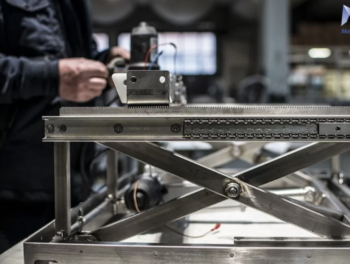 Pantografo di movimentazione e sollevamento per dinette, realizzato in Acciaio Inox 316.